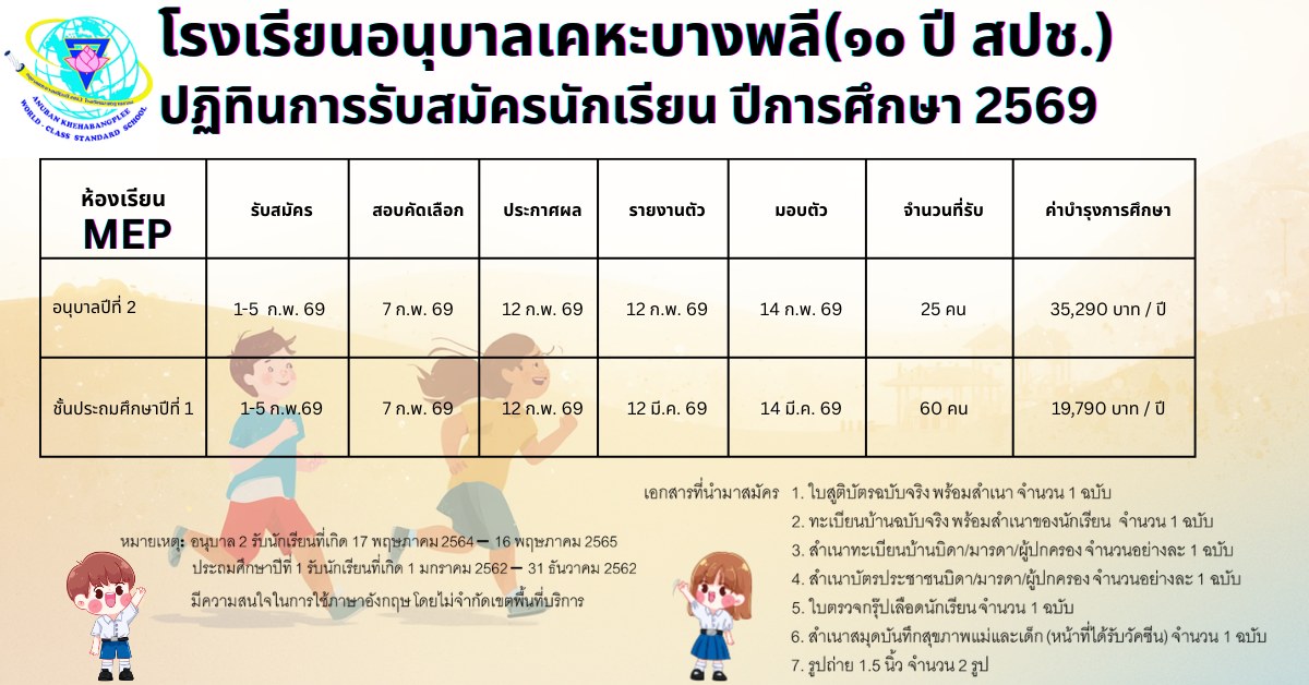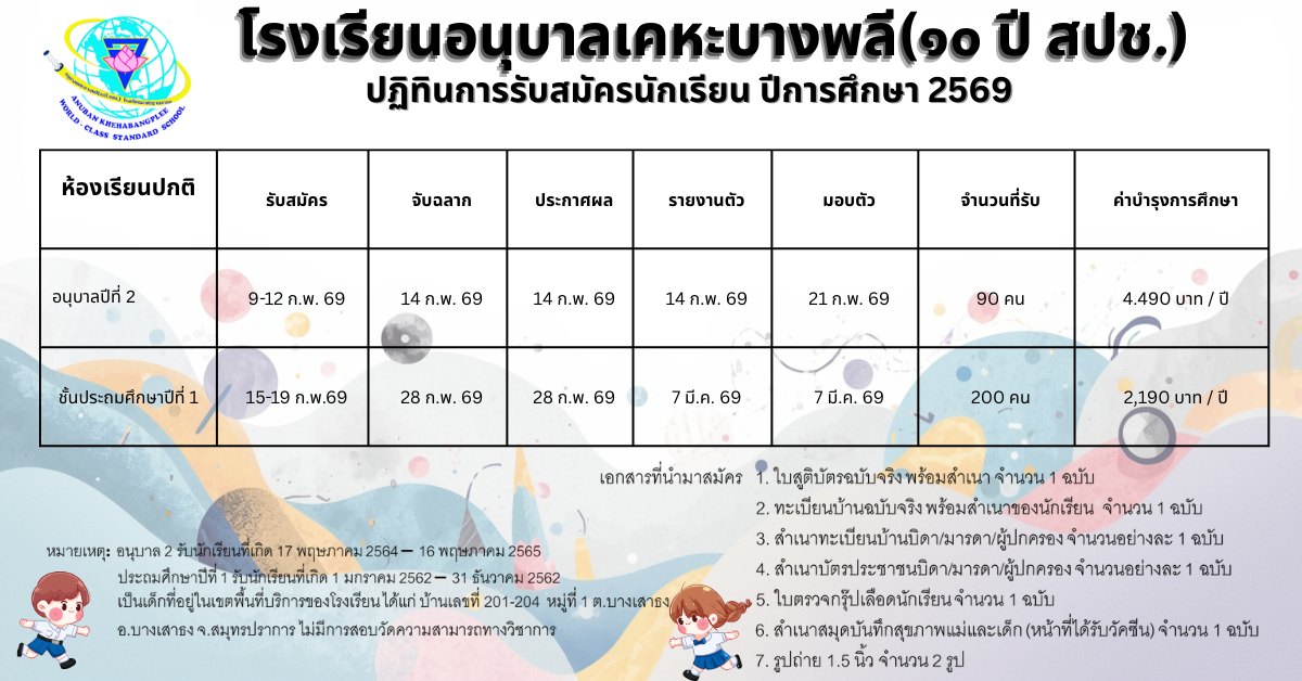 กำหนดการรับสมัครนักเรียน ประจำภาคเรียนที่ 1/2569