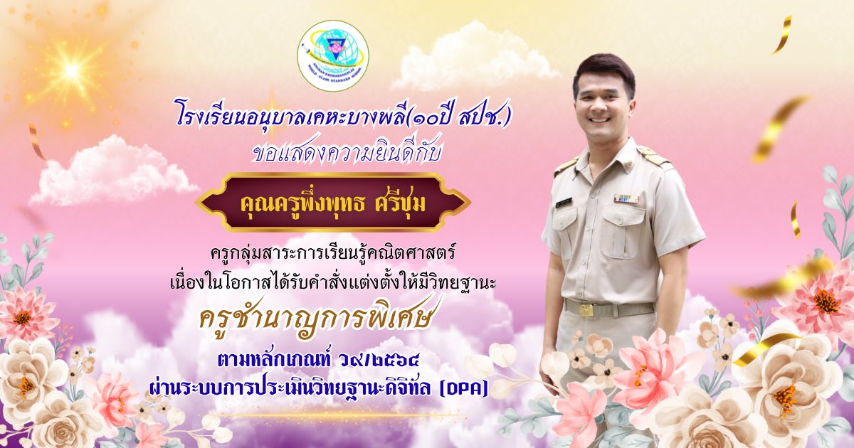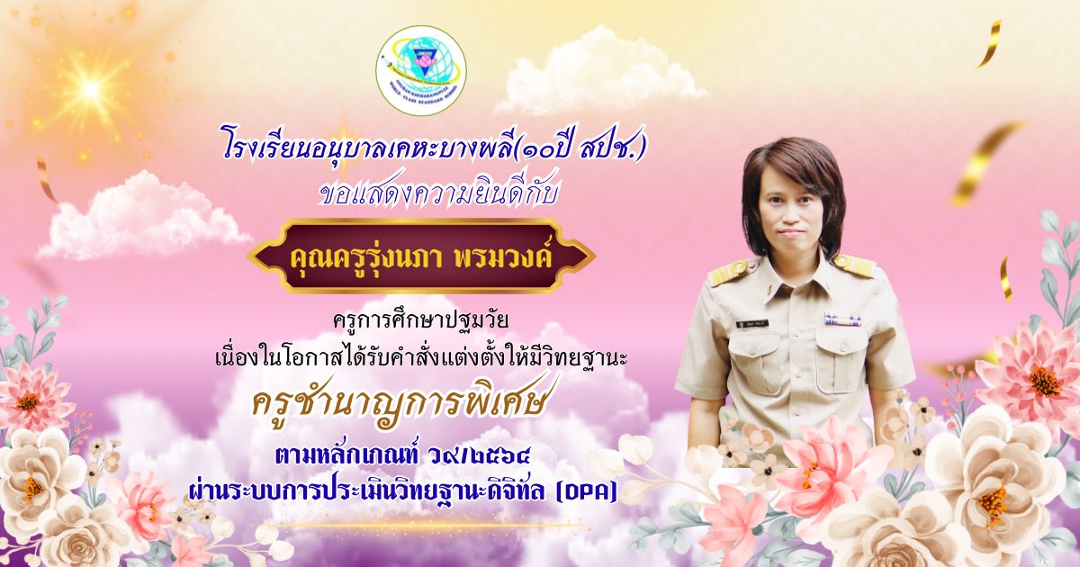 ครูกนกกาญจน์ แก้วนุช กลุ่มสาระการเรียนรู้ภาษาต่างประเทศ ได้รับการเลื่อนวิทยฐานะ "ครูชำนาญการพิเศษ"
