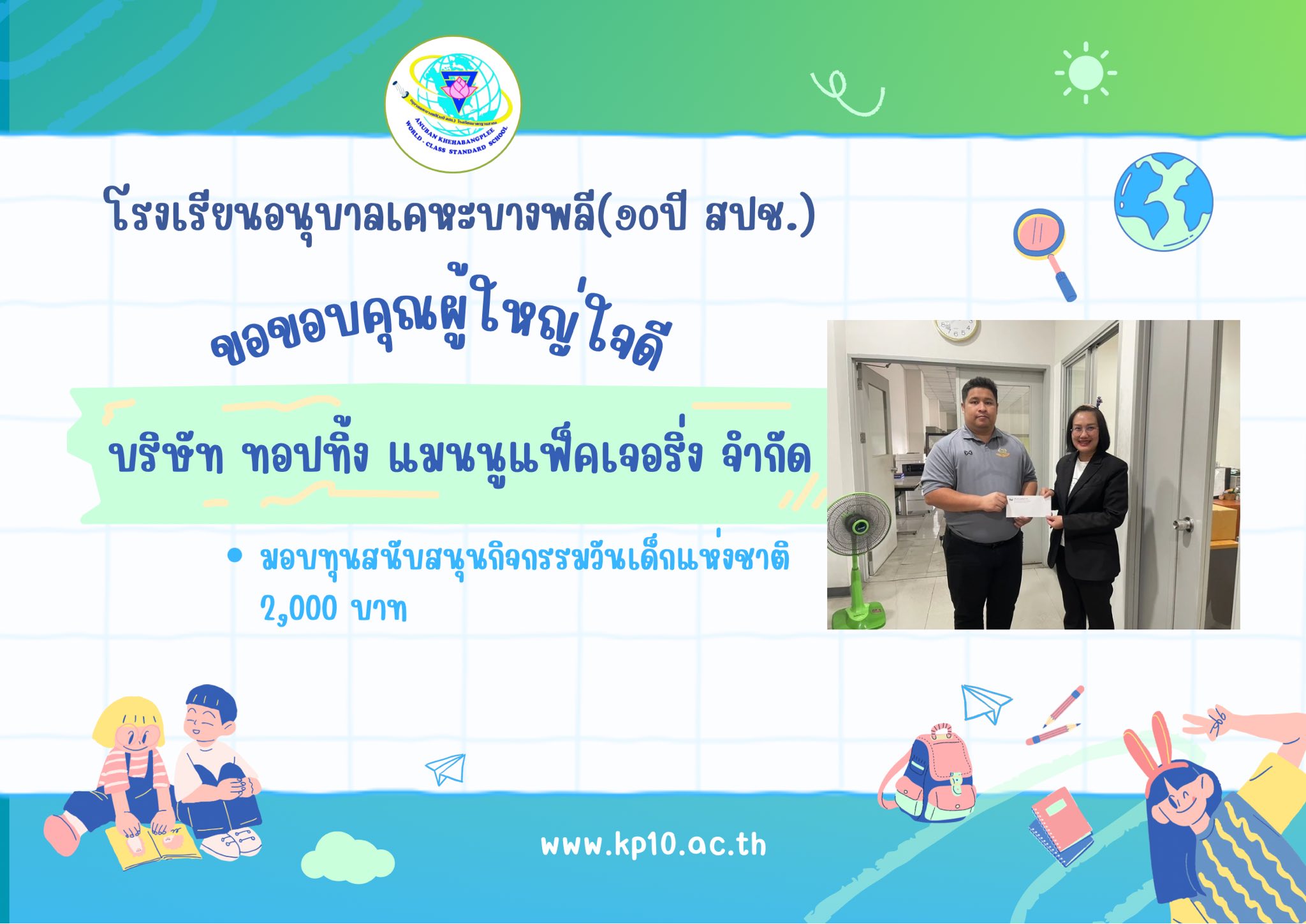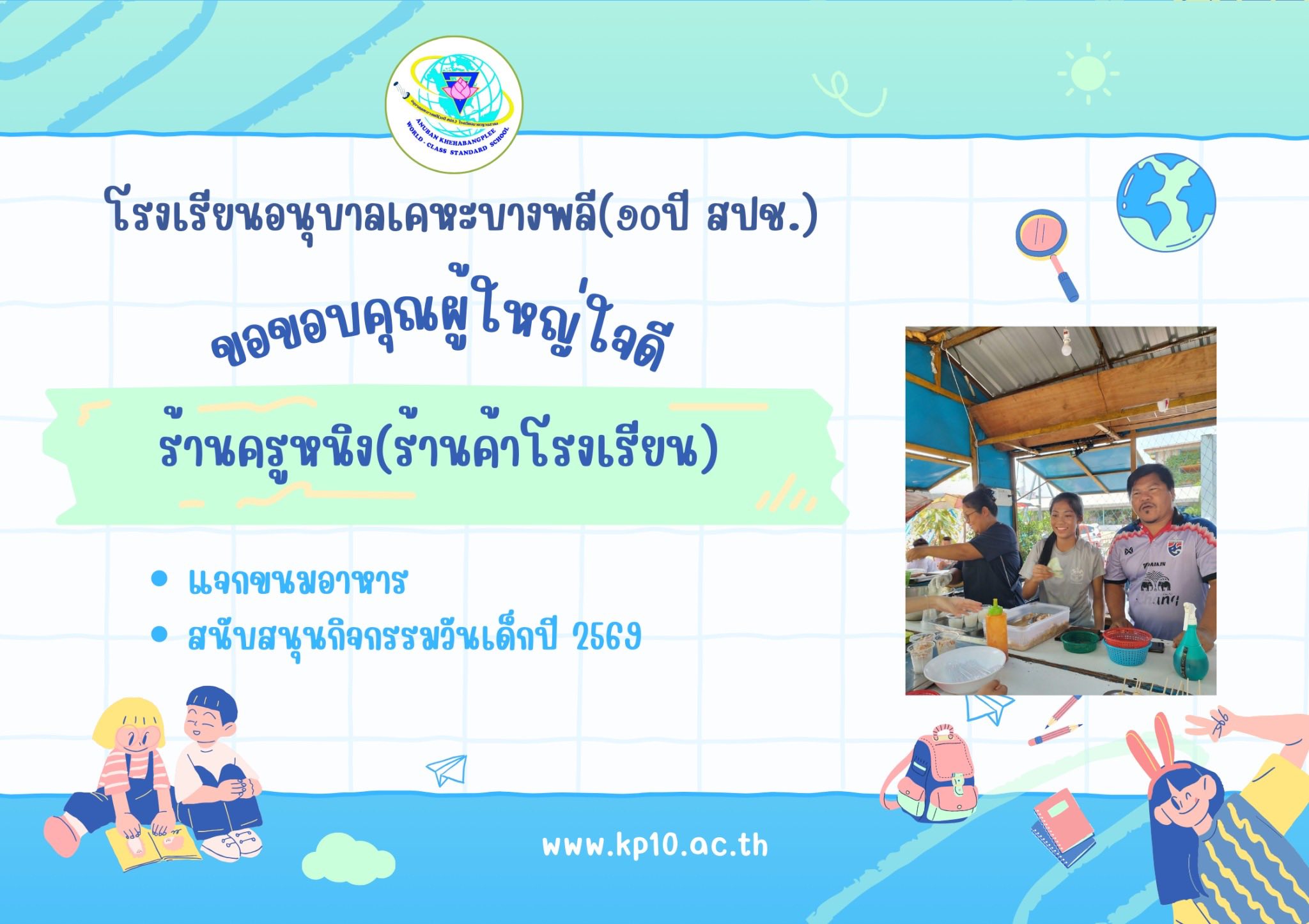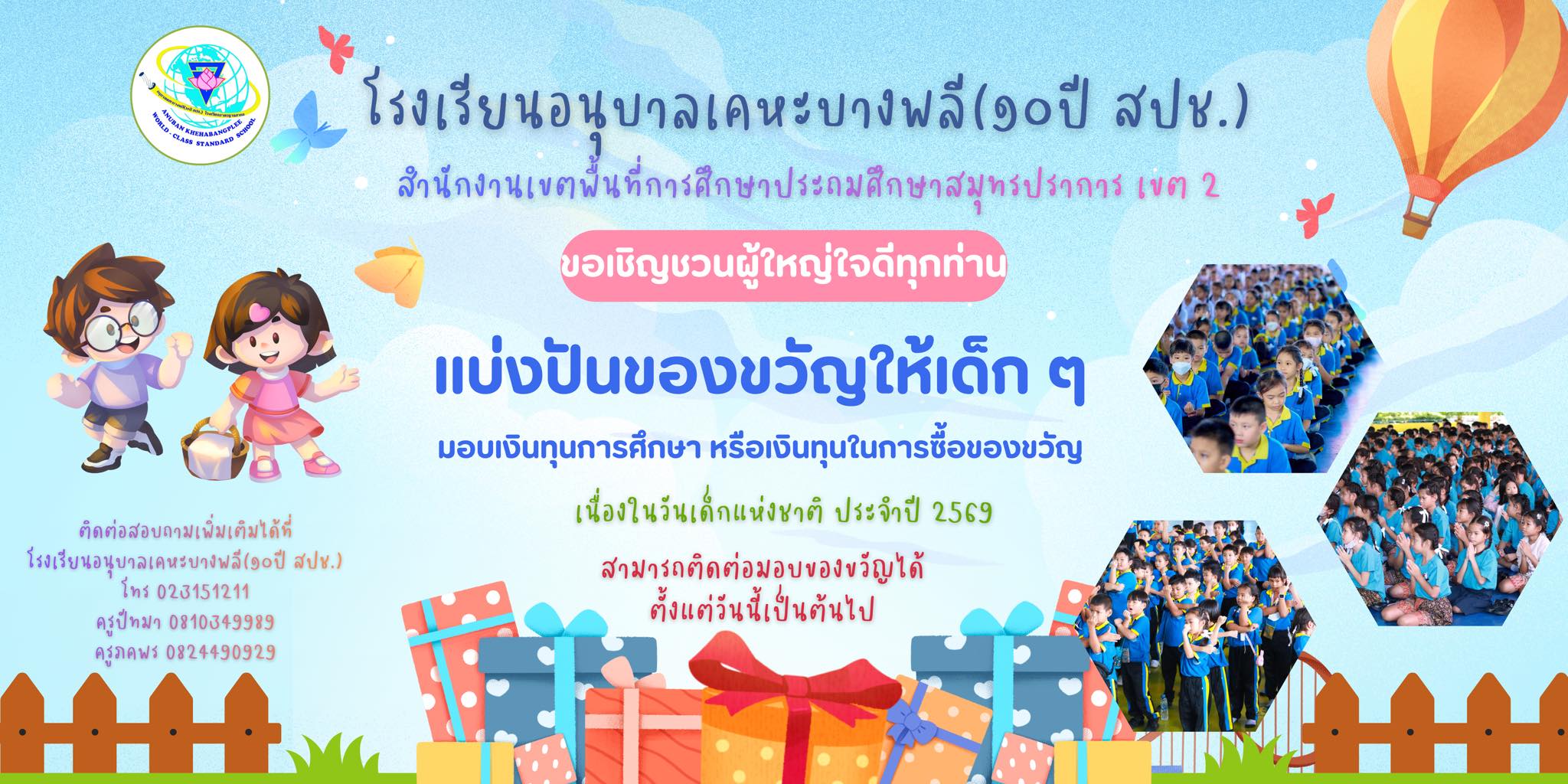 "โรงเรียนอนุบาลเคหะบางพลี (๑๐ปี สปช.) ร่วมต้านทุจริต โปร่งใส ตรวจสอบได้""รวมพลังคนโรงเรียนอนุบาลเคหะบางพลี (๑๐ปี สปช.) ต่อต้านคอร์รัปชัน"