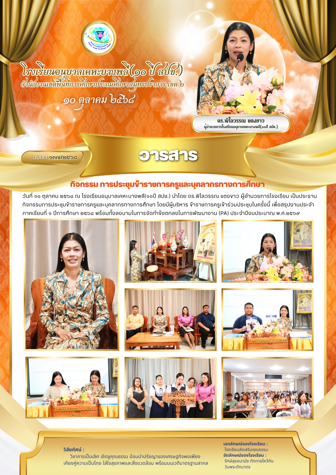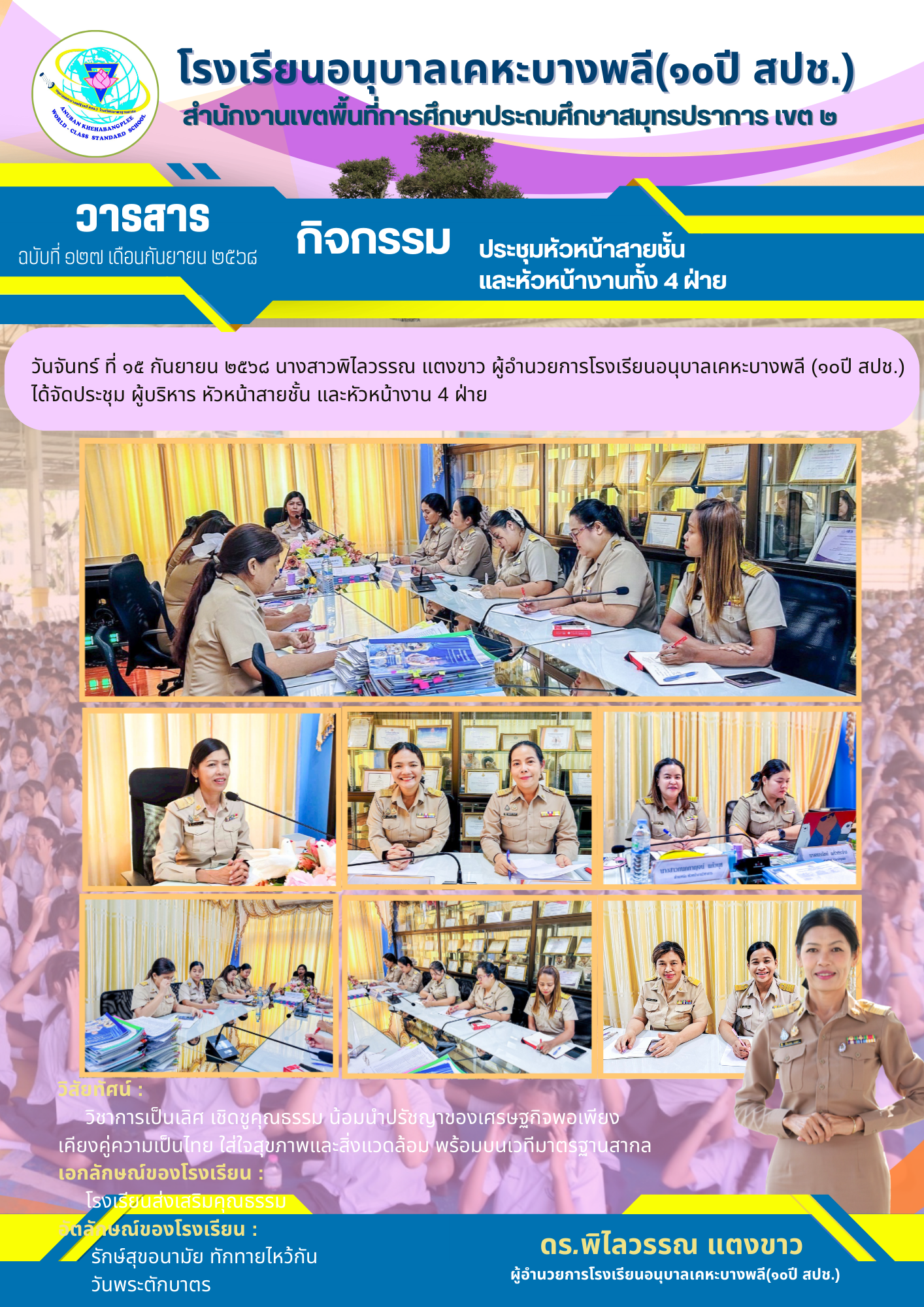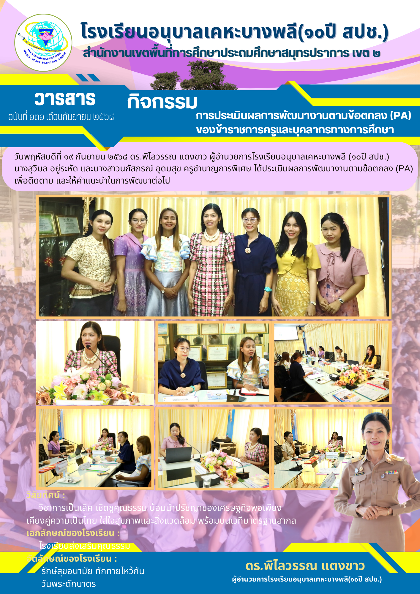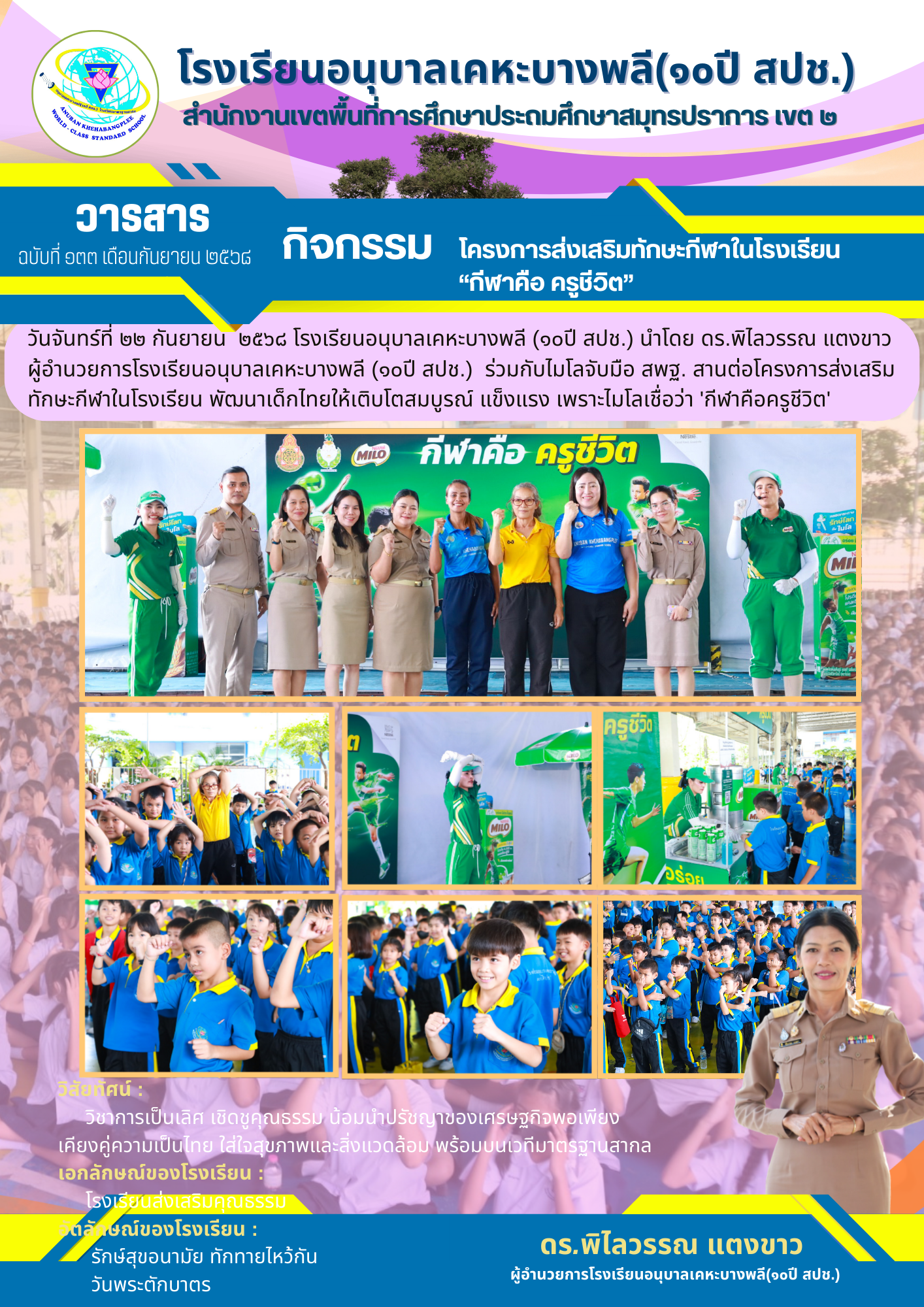"โรงเรียนอนุบาลเคหะบางพลี (๑๐ปี สปช.) ร่วมต้านทุจริต โปร่งใส ตรวจสอบได้""รวมพลังคนโรงเรียนอนุบาลเคหะบางพลี (๑๐ปี สปช.) ต่อต้านคอร์รัปชัน"