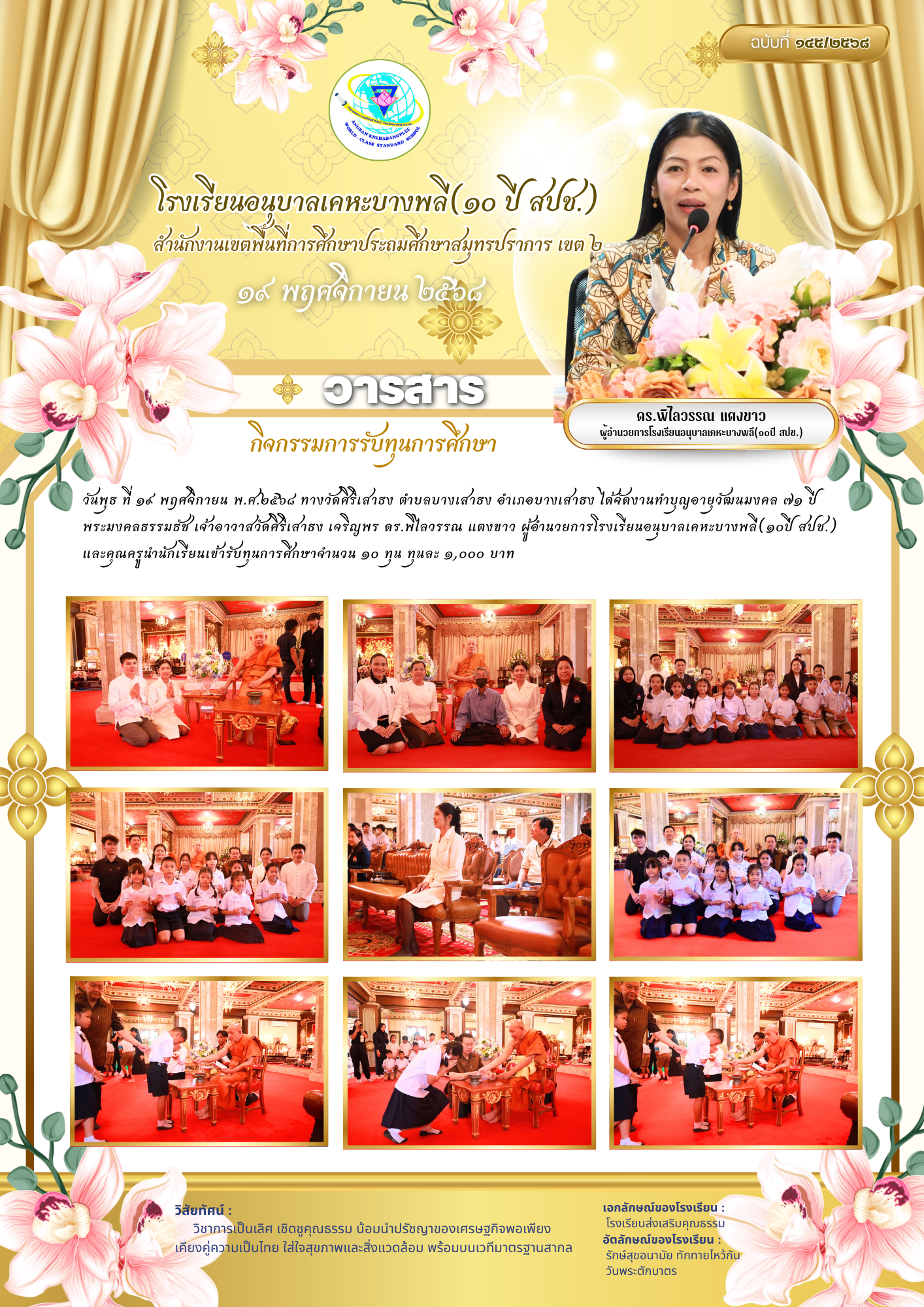 กิจกรรมมอบเกียรติบัตรให้แก่คณะครูและนักเรียน ผู้ผ่านการเข้าอบรมกิจกรรมค่ายพัฒนาผู้นำนักเรียน ประจำปีการศึกษา ๒๕๖๘